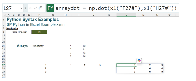 arraydot = np.dot(xl(“F27#”),xl(“H27#”))