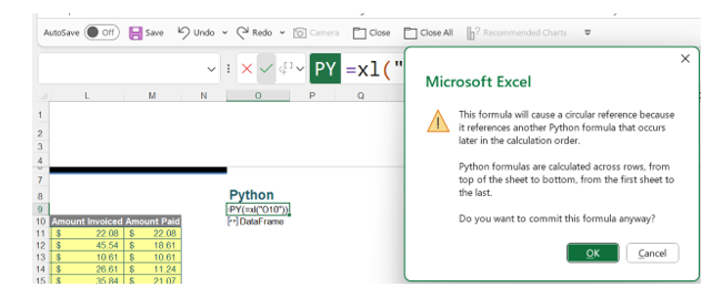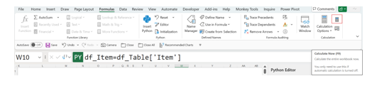 As previously stated (in Part 1 of the series), Python formulae recalculate automatically in row-major order when a value used in a Python formula is changed. This means across row 1 from A to XFD and then row 2 and so on. If this automation becomes a problem, with the premium version of Python it can be controlled from the Calculation Options settings in the Formulas tab: