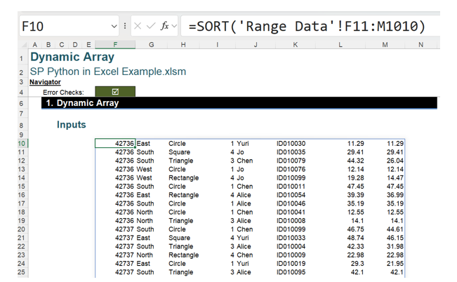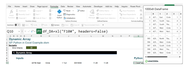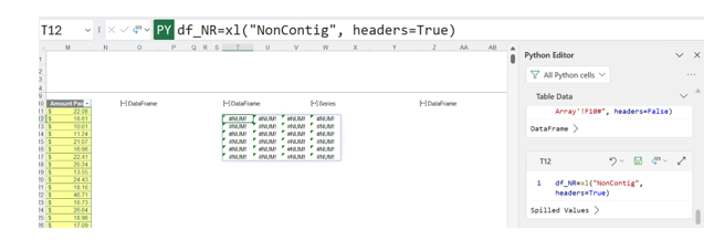 NaN (Not a Number) values are also called missing values, which means that this data cannot be processed. The Python xl() function also recognises dynamic arrays. This example uses the following dynamic array: