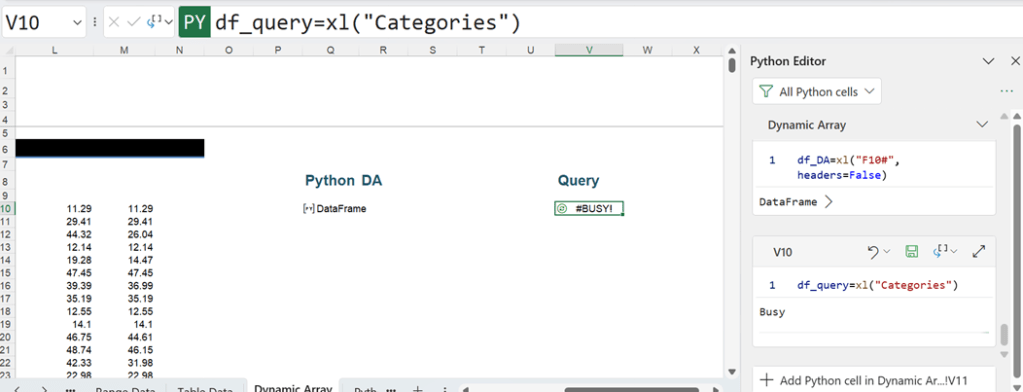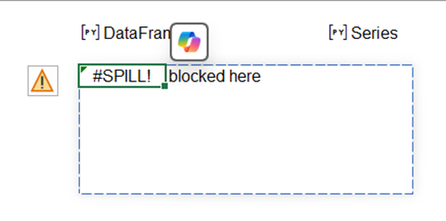As for dynamic arrays, this occurs when a cell in the Python output range (when expressed as an Excel value) already contains data.