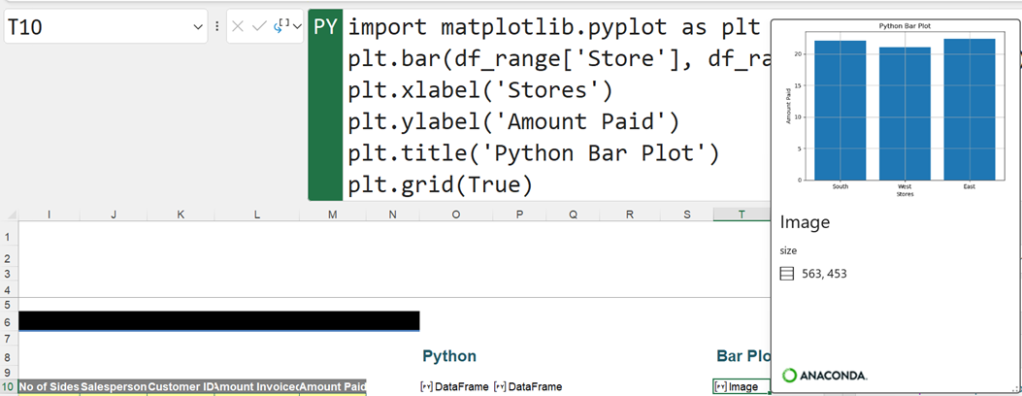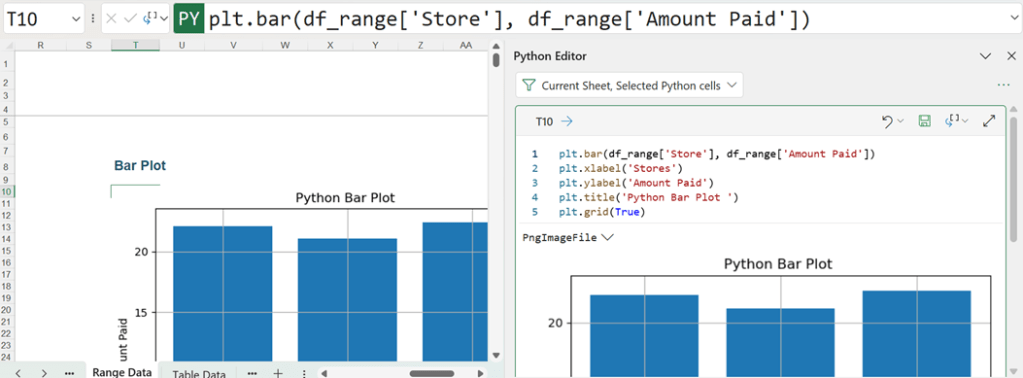 To see the bar plot in the workbook, it is possible to toggle between the Python and Excel output.