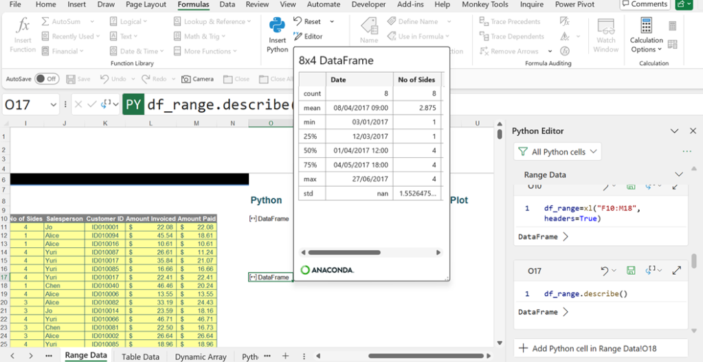 This example uses the Range Data sheet, where the DataFrame df_range is being analysed: