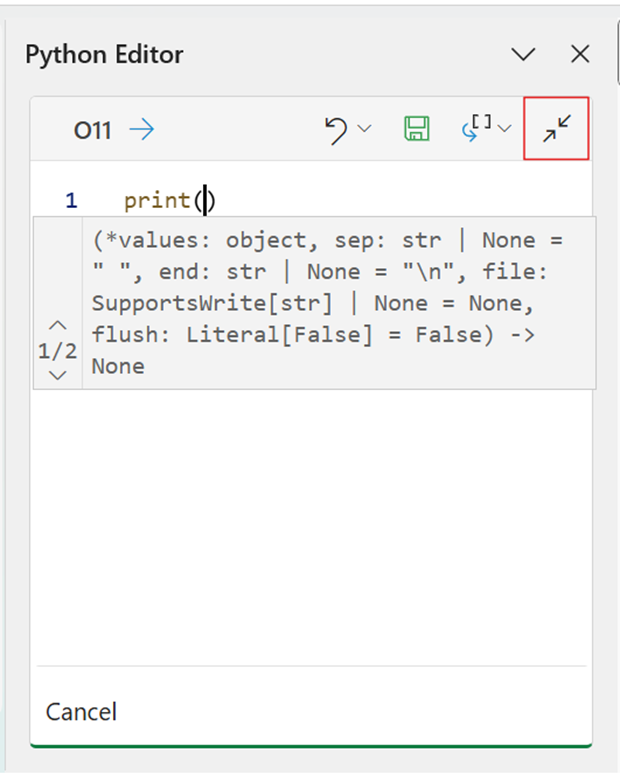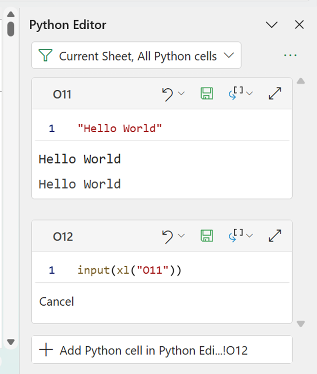 The Python Editor is one of the most recent additions to Python in Excel and is therefore most likely to change as users build more-complex Python code and provide valuable feedback.
