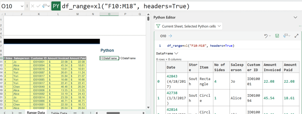since the cell O10 contains the DataFrame df_range.
