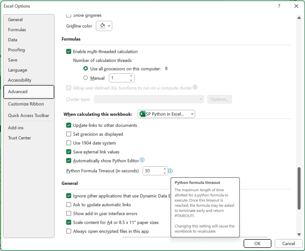 If this error is repeatable, follow the same procedure as for the #BUSY! error. If it persists, consider adjusting the Python timeout limit as shown below: