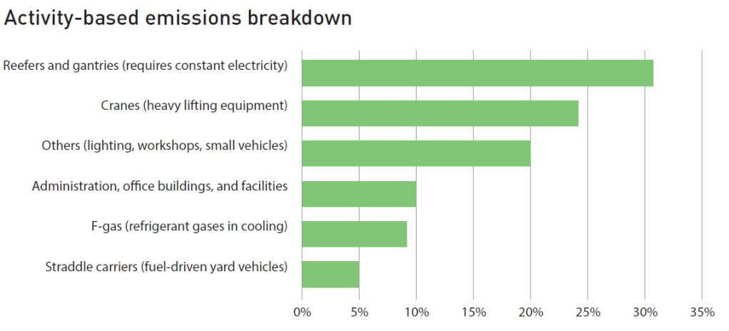The same principle applies to environmental costs. Emissions are not a vague overhead to be absorbed at the company level but are the outcome of specific activities. Moving containers with yard vehicles, operating cranes, or powering refrigerated units all generate measurable emissions.