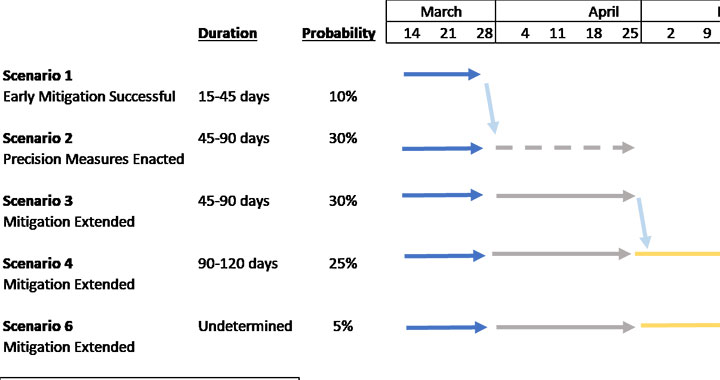 Each scenario requires dozens of assumptions, including health and economic/business. Nearly all of these assumptions are based on past experience with similar contagious diseases or crises, but each has a high degree of uncertainty since this is a new and unique virus. A few examples: